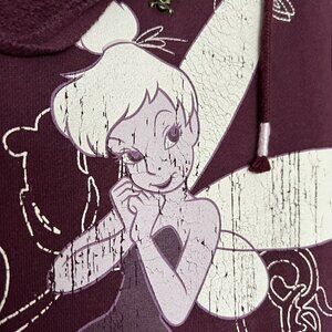 DISNEYLAND Vintage Tinker bell Hooded Sweatshirt Embroidered Skulls Purple SMALL