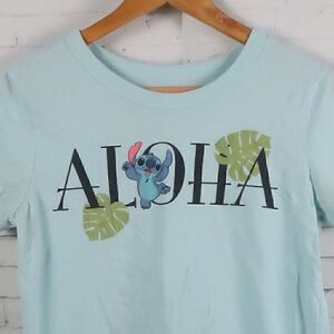 DISNEY LILO & STITCH ALOHA LIGHT BLUE SHORT SLEEVE CREW NECK T SHIRT SIZE SMALL