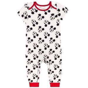 * Red printed jersey romper with full body Mickey graphic and emboridery decoration