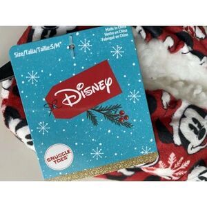 DISNEY MICKEY MOUSE CHRISTMAS SANTA Hat FUZZY BABBA Slipper Socks Sz S-M NWT