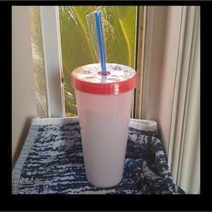 🆕️•Disney's Minnie Mouse standing in front of a Star•Holds up to 24 ounces of cold liquid•Perfect for travel - Fits in any car cup holder•Color changes from clear to bright red•Includes: Screw-on Plastic Lid and Straw