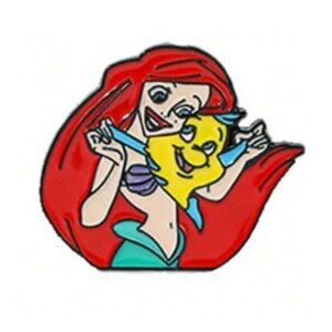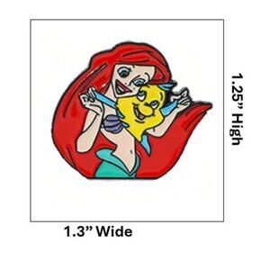 ITEM DESCRIPTION: This is a pretty enamel trading pin featuring cute little Ariel & Flounder from Disney’s The Little Mermaid movie. Measures 1.3 in. W x 1.25 in. H. Cute pin for the Little Mermaid fan.