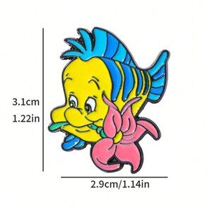 ITEM DESCRIPTION: This is a pretty enamel trading pin featuring cute little Flounder from Disney’s The Little Mermaid movie. Measures 1.14 in. W x 1.22 in. H. Cute pin for the Little Mermaid fan.