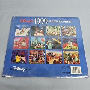 Vintage from 1999, printed in the USA, DISNEY's 1999 Mini Bean Bag Calendar. The Disney Store- Sealed. Weighs 8 oz, and measures approximately 12.5in wide.