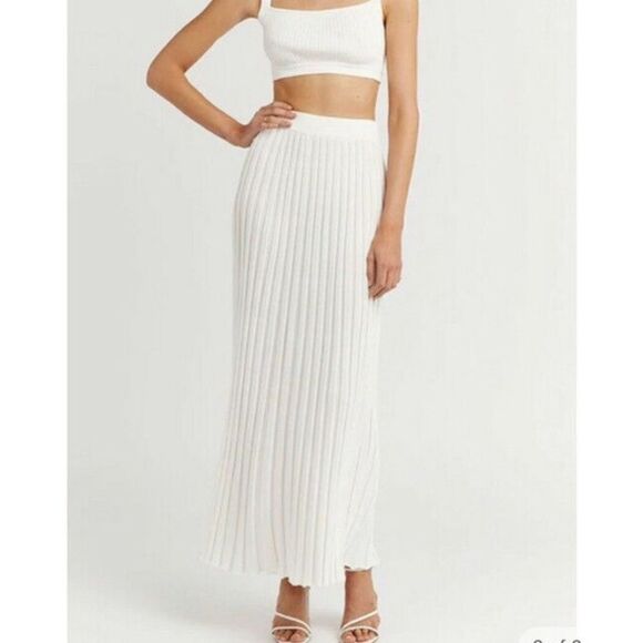 DISSH Off white, high waisted, thick ribbed maxi skirt size large NWT