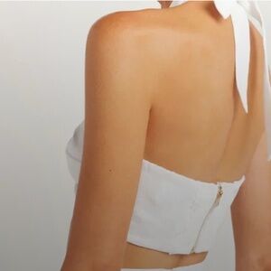 DISSH Paradise White Linen Crop Top Ties Around Neck - Zip Back Size 4