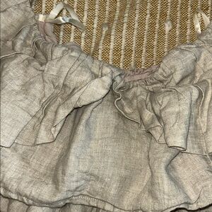 This chic mini skirt from DISSH showcases a playful bubble style with cascading ruffled tiers, perfect for casual outings or resort wear. The lightweight, semi-sheer fabric in a sophisticated silver-gray hue adds a touch of elegance to its fun and flirty design.