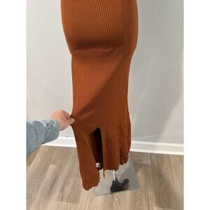 DISSH Toni Halter Dress Brown Keyhole Ribbed Knit Keyhole Maxi Size Small