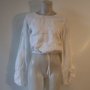 Elegant white crop top. Features long sleeves. Perfect for casual wear.