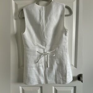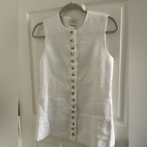 Elegant white vest. Sleeveless design. Button-up front. Perfect for layering.