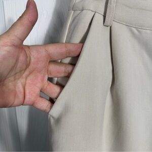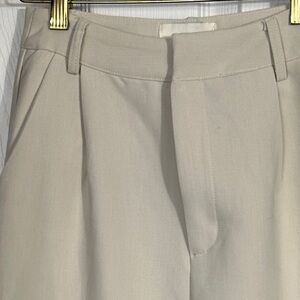 DIISH cream colored dress pants in size 2. Features a high waist, wide leg, and button plus double hook closure. 78% polyester/18% rayon/4% spandex. Flowy and feminine, great for office or a date night.