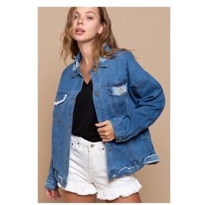 DISTRESSED Denim Jacket with Floral Laced Pockets