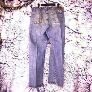 A good holes, some fading, and general wash wear. Approx measurements: Waist 34", Rise 11.5", Inseam 29", Overall 40".