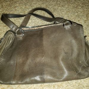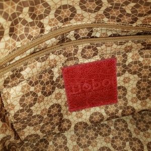 Soft supple leather on this chocolate brown Hobo satchel. Lining is a beautiful print. One zipper pocket and credit card slots inside. The straps are 10inches tall. The bag is 14in wide x 8in tall. EXCELLENT condition!!