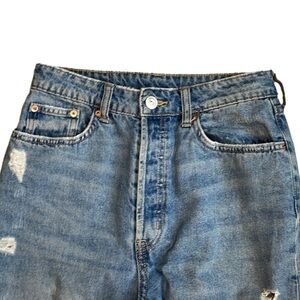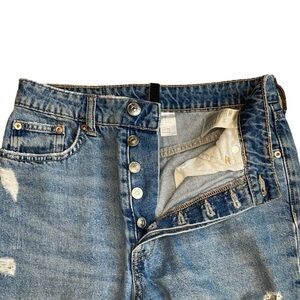 DISTRESSED STRAIGHT LEG DENIM BLUE JEANS BY DIVIDED, SIZE 4