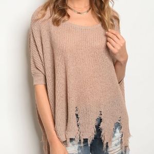 3/4 sleeve slub knit distressed lightweight Pullover.