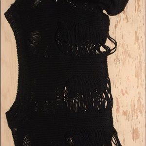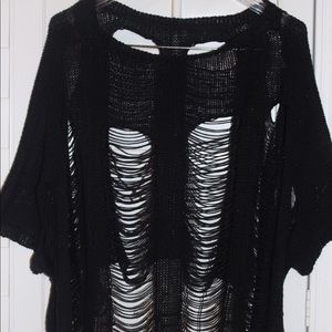 DISTRESSED black knit top.