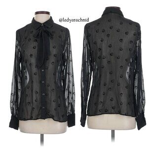 - Black skull flocked chiffon p*ssy-bow collar blouse