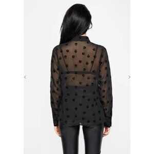 - Textured sheer chiffon fabrication with flocked velour all-over skull motif