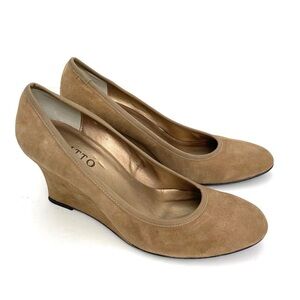 Ditto by Van Eli Suede Wedge Heel Pumps in Camel Tan