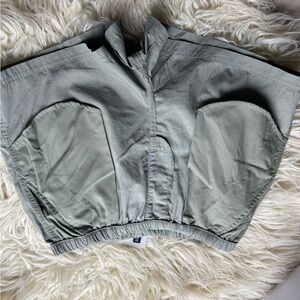 Stylish gray jacket with drawstring detail. Perfect for casual wear.