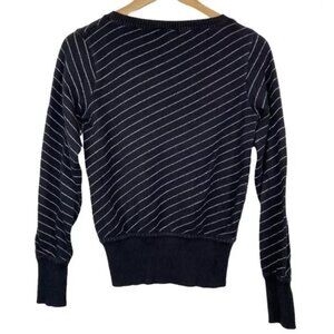 DIVIDED BY H&M BLACK AND METALLIC SILVER STRIPED DRAWSTRING WAIST SWEATER SIZE 10.