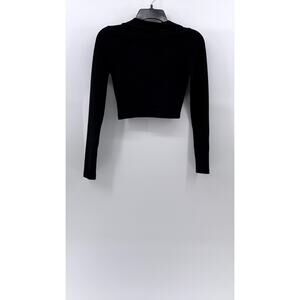 DIVIDED By H&M Women's Black Ribbed Split-Neck Long Sleeve Cropped Polo Top SZXS