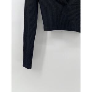 DIVIDED By H&M Women's Black Ribbed Split-Neck Long Sleeve Cropped Polo Top SZ XS