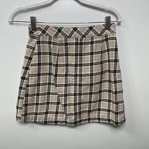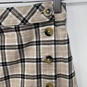 DIVIDED H&M Button Up Plaid Mini Skirt Schoolgirl Tan Black Size 4 100% Cotton