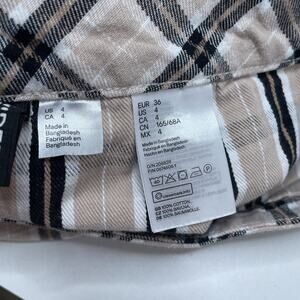 H&M Divided Women’s size 4 mini plaid skirt, button front, tan, black and white all over print plaid windowpane print. 100% cotton.