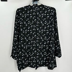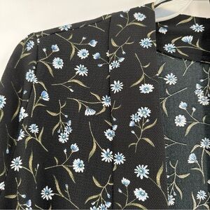 DIVIDED H&M Women’s Black Crepe Fabric w/Blue Floral Print Jacket Size Large