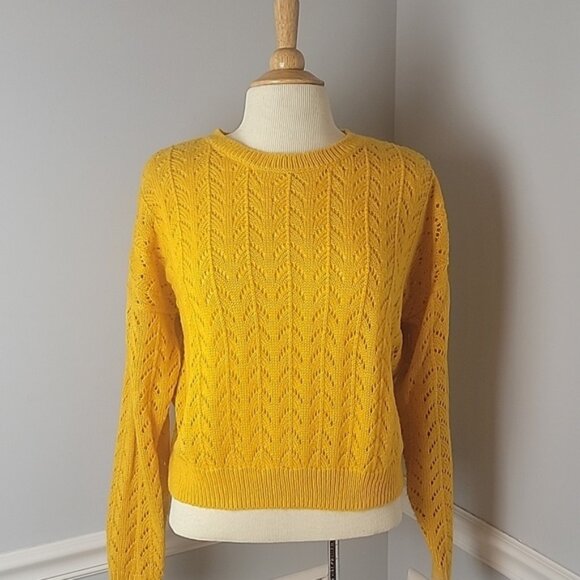 DIVIDED H&M Yellow Gold Pointelle Knit Drop Shoulder Crewneck Cropped Sweater M