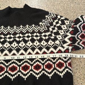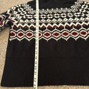Soft, jacquard-knit sweater with wool content.