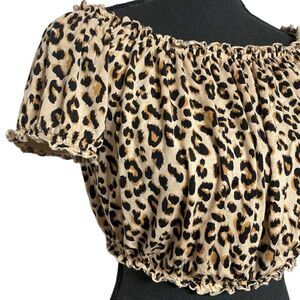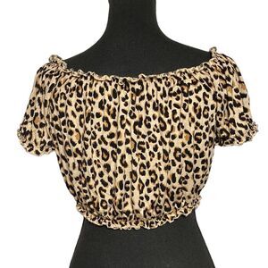 DIVIDED Leopard Animal Print Gathered Crop Top