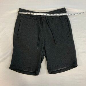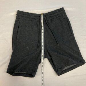 H&M DIVIDED men's dark grey athletic shorts with 2 side pockets and one back right side pocket. Cotton/Poly with soft fleece on inside fabric. Size small. See photos for measurements