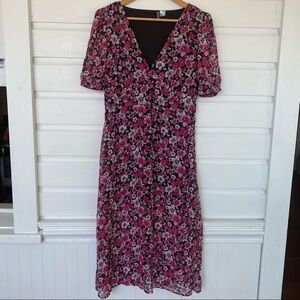 DIVIDED || V-Neck Floral Midi Dress with Side Slit; Size M (EUR 42)