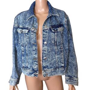 DIVIDED brand stone washed Y2K throwback style button up jean/denim jacket SZ L