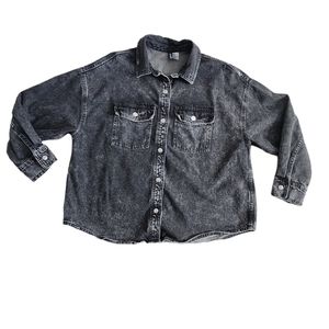 DIVIDED by H&M Oversized Denim Shirt Black Washed 100% Cotton Size M Medium