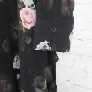 BLACK PINK ROSE SCULL SHEER LONG SLEEVE ASYMETRICAL BUTTON DOWNOVERSIZED BLOUSE SIZE 2 BY H&M DIVIDED. NEW WITH TAGS, NWT