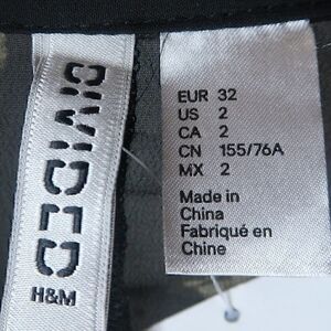 DIVIDED H&M BLACK SHEER LONG SLEEVE ASYMETRICAL PINK ROSE SCULL TOP SIZE 2 NWT