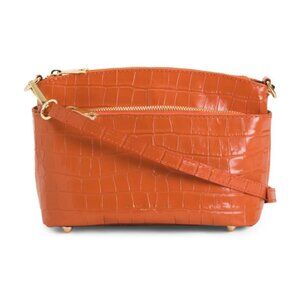 DIVINA FIRENZE Orange Leather Triple Entry Cocco Crossbody - Made In Ita…