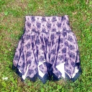 DIVINE Vintage 80's pink black lace handkerchief Hem miniskirt sz MED
