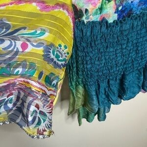 life of the party 3/4 sleeve multi color fabric blouse. if you want to be talk of the party or just love wearing vibrant colors this blouse is for you. it does have stretch. NWT. the boutique price listed as $89