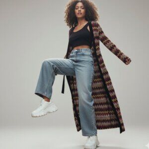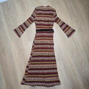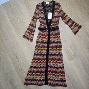 DIXIE Multi-Color Knit Cardigan Dress Small Duster Wrap Maxi Dress Academia