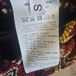 This stunning DIXIE knit wrap dress is a rare find from the Italian brand known for its sophisticated, retro-inspired designs. Its cozy, open-front silhouette and vibrant, multi-color pattern make it a perfect statement piece for cooler weather. Layer it over a simple dress or with jeans and a tee to add a pop of unique style. This is a truly unique piece that stands out from the crowd!