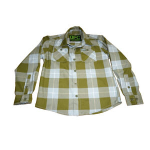 Dixxon DFC Youth Division plaid flannel shirt in a green, beige, and white colorway. Features a classic button-up front, dual chest pockets, and long sleeves with button cuffs. Made from Dixxon’s D-Tech proprietary blend for a structured yet comfortable feel. Perfect for everyday wear, layering, or matching with adult Dixxon flannels. Details: * Brand: Dixxon Flannel Co. (DFC Youth Division) * Size: Youth Small * Color: Green / Beige / White plaid * Style: Button-up flannel shirt * Features: Chest pockets, long sleeves, branded buttons * Condition: Pre-owned, good condition with no major flaws noted Please review all photos for condition and details. Measurements available upon request.