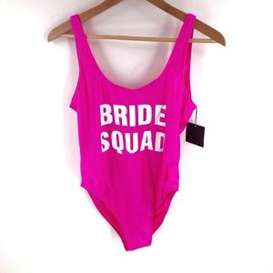 DIXPERFECT Bride Squad Hot Pink Swimsuit One Piece Women's Sz XL NWT