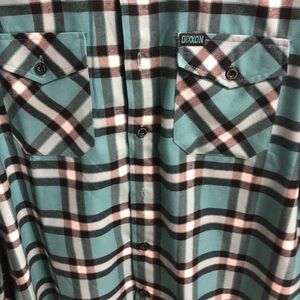 DIXXON “Cancun” long sleeve button down flannel shirt men’s large in excellent used condition