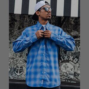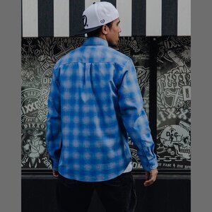 Men’s blue plaid patterned flannel shirt