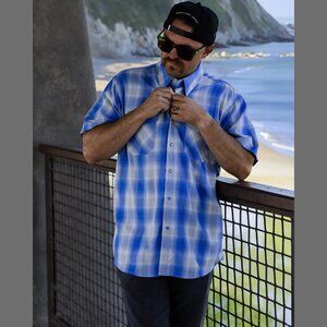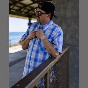 Stay coastal cool with the Pierside Bamboo Short Sleeve from Dixxon. Featuring a breezy blend of ocean-inspired blues, soft grays, and crisp whites, this plaid snap-front shirt channels laid-back beach vibes with every wear. Crafted from our signature bamboo blend for next-level comfort and breathability, The Pierside is built to move with you—whether you're catching a breeze on the boardwalk or chasing the horizon. Ideal for sun-soaked days, salty air, and wherever the tide takes you.